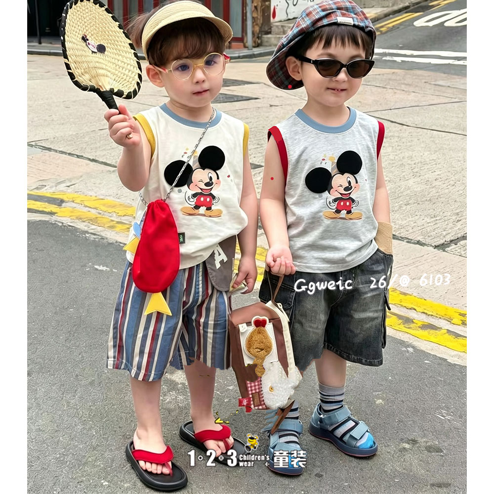 【五一限价19.9元】【特价】杏 夏款 男小童6103 GGDD时尚背心1+2=3童装连锁
