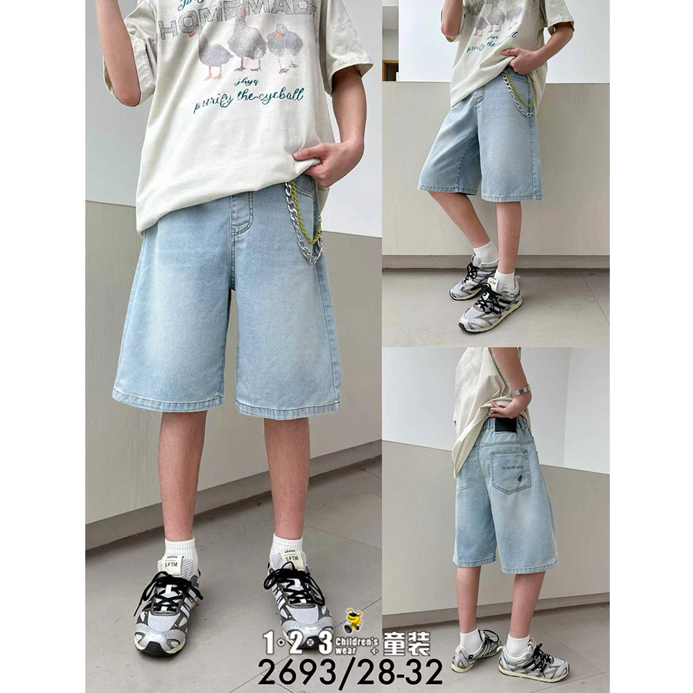 【五一限价44.9元】【特价】浅蓝 夏款 28-32男大童2693 TDDD时尚牛仔短裤1+2=3童装连锁