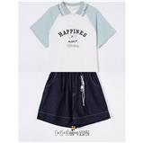 浅蓝 夏款 女大童6F20835 DDDD时尚短袖套装1+2=3童装连锁