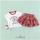 (多多同款)红 夏款 女小童6F20312 DDDD时尚短袖套装1+2=3童装连锁