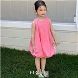 【五一限价42.9元】梅红 夏款 女小童TS2697 TSDD时尚无袖连衣裙1+2=3童装连锁