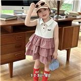 【五一限价43.9元】红 夏款 女小童26128 TSDD时尚无袖连衣裙1+2=3童装连锁