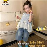 【五一限价68.9元】蓝 夏款 女小童G35117 CJDD时尚背心套装1+2=3童装连锁