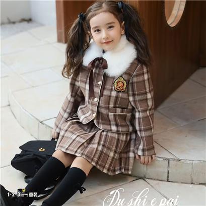 【秒杀价108.9元】灰 冬款 女中童86130 DSDD时尚长袖厚套装1+2=3童装连锁