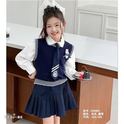 >>藏青 秋款 女中童259902 KJDD时尚长袖套装1+2=3童装连锁