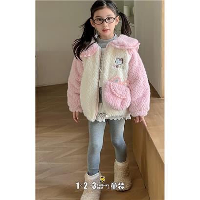 >>粉 冬款 女中童DK5125 HLDD时尚薄棉衣1+2=3童装连锁