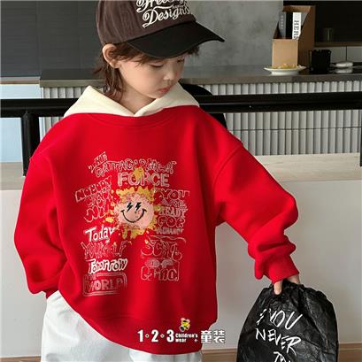 >>【特价】红 冬款 男中童DK1136 WQDD时尚厚套头衫1+2=3童装连锁
