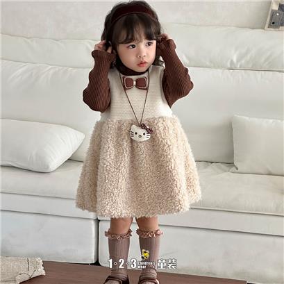 咖啡 冬款 女小童DK7215 KLDD时尚长袖厚套装1+2=3童装连锁