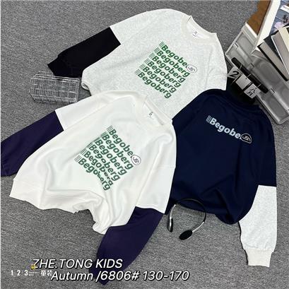 >>【清仓价26.9元】【特价】黑 秋款 男大童6806 WCDD时尚薄套头衫1+2=3童装连锁