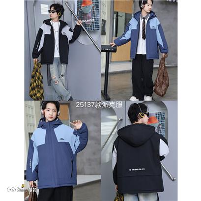 >>(兔毛派克服)黑 冬款 男大童25137 FLDD时尚薄棉衣123童装连锁