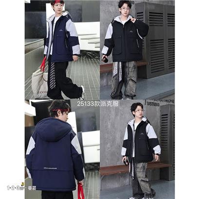 >>(兔毛派克服)黑 冬款 男大童25133 FLDD时尚薄棉衣123童装连锁