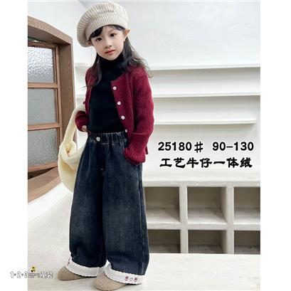 【双十一活动43.9元】【特价】蓝 冬款 90-130女小童25180 HYDD时尚牛仔夹裤123童装连锁