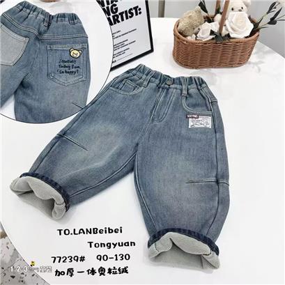 >>【双十一活动49.9元】【特价】黑 冬款 90-130男小童77239 LBDD时尚牛仔夹裤123童装连锁