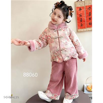 >>【双十一活动70.9元】粉 冬款 女小童88060 LJDD时尚长袖厚套装123童装连锁