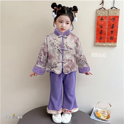 >>【双十一活动70.9元】紫 冬款 女小童88060 LJDD时尚长袖厚套装123童装连锁