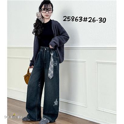 >>【福利专享69.9元】【特价】蓝 冬款 26-30女大童25863 CXDD时尚牛仔夹裤123童装连锁