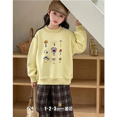 (奥粒一体绒/立体蘑菇)【特价】黄 冬款 女中童NH89230 QYDD时尚厚套头衫1+2=3童装连锁