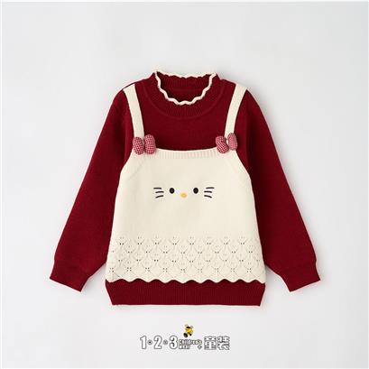 年货专区>>(年货款)(多多同款)【特价】红 冬款 女小童5F00607 DDDD时尚加厚毛衣1+2=3童装连锁