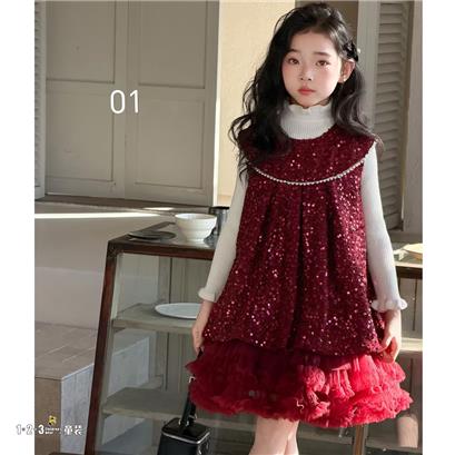 >>红 冬款 女中童01 MSDD时尚长袖厚套装123童装连锁