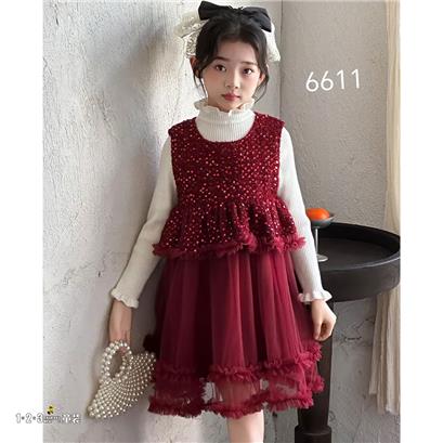 >>红 冬款 女中童6611 MSDD时尚长袖厚套装123童装连锁