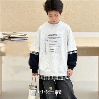 《运动》【特价】烟灰 春款 男中童CK26208 BLDD时尚薄套头衫1+2=3童装连锁