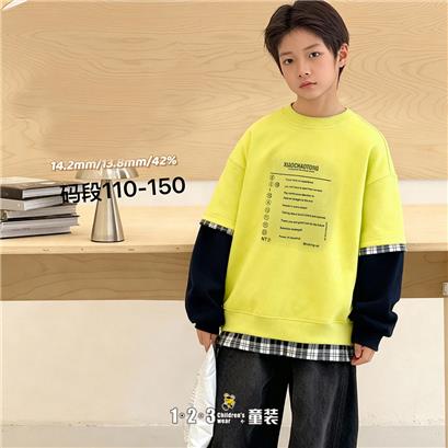 《学院》【特价】绿 春款 男中童CK26251 BLDD时尚薄套头衫1+2=3童装连锁