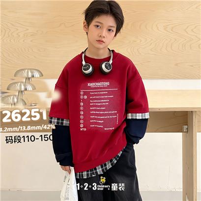 《学院》【特价】红 春款 男中童CK26251 BLDD时尚薄套头衫1+2=3童装连锁