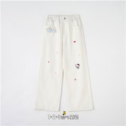 >>《甜美》(多多同款)【特价】米白 春款 150-175女大童6F20143 DDDD时尚牛仔单裤1+2=3童装连锁