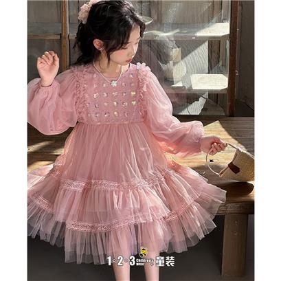 《甜美》粉 春款 女中童CK8812 MSDD时尚长袖连衣裙1+2=3童装连锁