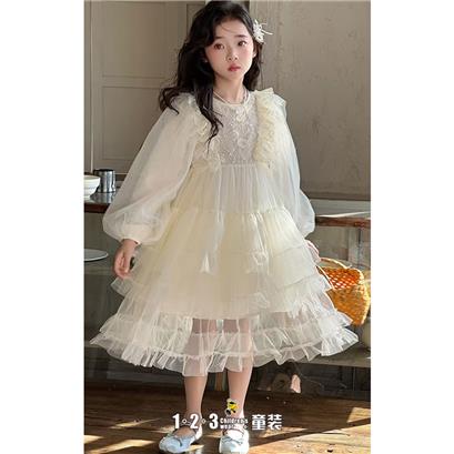 >>《甜美》米黄 春款 女中童CK8806 MSDD时尚长袖连衣裙1+2=3童装连锁