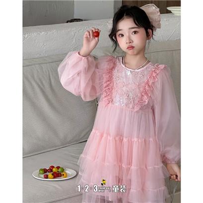 《甜美》粉 春款 女中童CK8806 MSDD时尚长袖连衣裙1+2=3童装连锁
