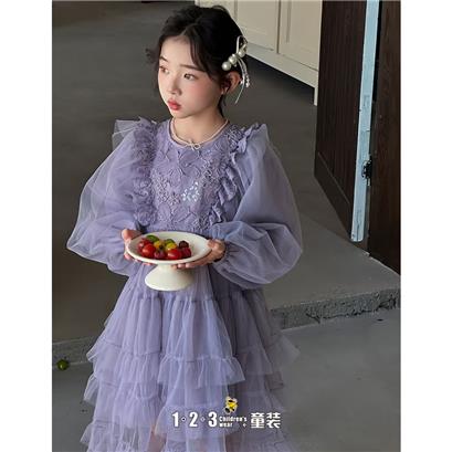 《甜美》紫 春款 女中童CK8806 MSDD时尚长袖连衣裙1+2=3童装连锁