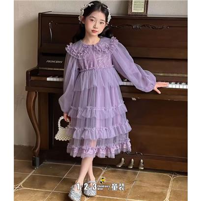 《甜美》紫 春款 女中童CK8801 MSDD时尚长袖连衣裙1+2=3童装连锁