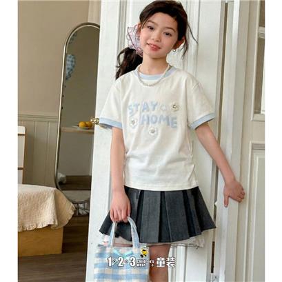 《甜美》【特价】浅蓝 夏款 女中童XK26111 XTDD时尚短T1+2=3童装连锁