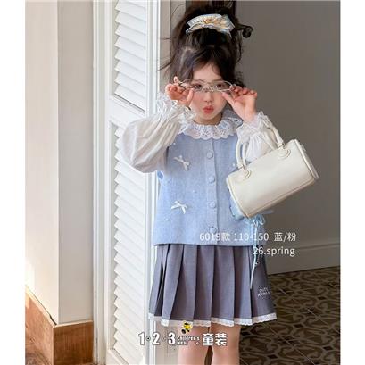 【清仓价81.9元】《学院》蓝 春款 女中童CK26019 HLDD时尚长袖套装1+2=3童装连锁