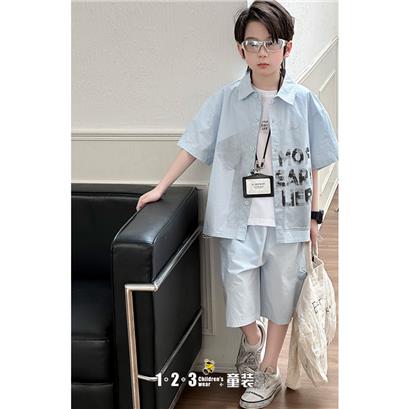>>《复古》【特价】蓝 夏款 男中童XK8609 XLDD时尚短袖套装1+2=3童装连锁