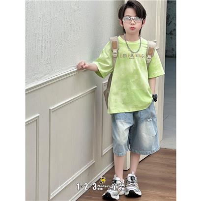 《休闲》【特价】绿 夏款 男中童XK8607 XLDD时尚短袖套装1+2=3童装连锁