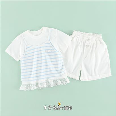 《甜美》【特价】米白 夏款 女大童XKY391 YGDD时尚短袖套装1+2=3童装连锁