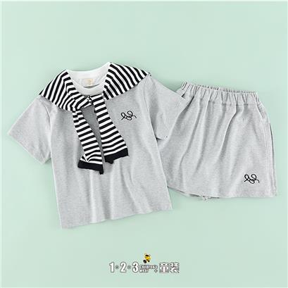>>《学院》【特价】灰 夏款 女大童XKY537 YGDD时尚短袖套装1+2=3童装连锁