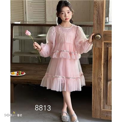 >>粉 春款 女中童8813 MSDD时尚长袖连衣裙123童装连锁