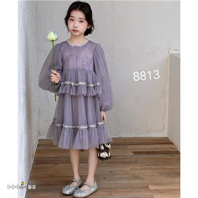 >>紫 春款 女中童8813 MSDD时尚长袖连衣裙123童装连锁