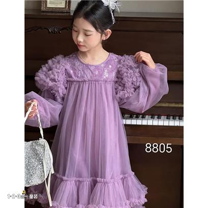 >>紫 春款 女中童8805 MSDD时尚长袖连衣裙123童装连锁