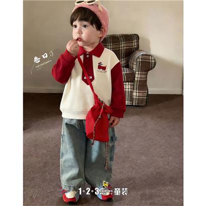 >>【特价】红 春款 男小童2859 FXDD时尚薄套头衫123童装连锁