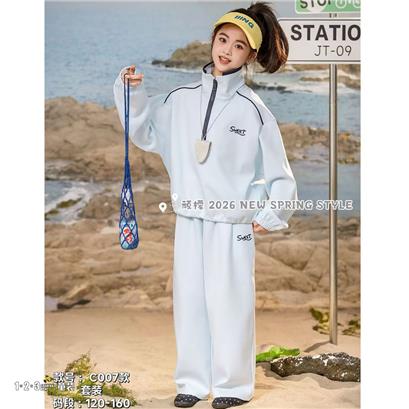 蓝 春款 女中童C007 XGDD时尚长袖套装123童装连锁