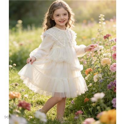 >>米白 春款 女中童8817 MSDD时尚长袖连衣裙123童装连锁