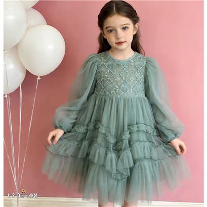 >>绿 春款 女中童8822 MSDD时尚长袖连衣裙123童装连锁