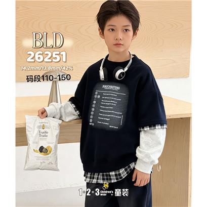 >>【特价】黑 春款 男中童26251 BLDD时尚薄套头衫123童装连锁