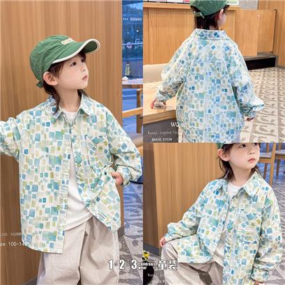 >>浅蓝 春款 男中童9703 WQDD时尚长袖衬衫123童装连锁