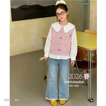 (三件套)粉 春款 女中童2601 WNDD时尚长袖套装123童装连锁