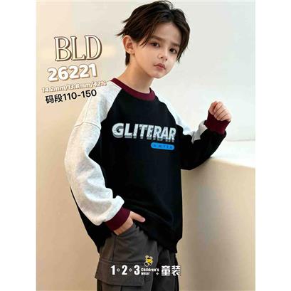 >>【特价】黑 春款 男中童26221 BLDD时尚薄套头衫1+2=3童装连锁